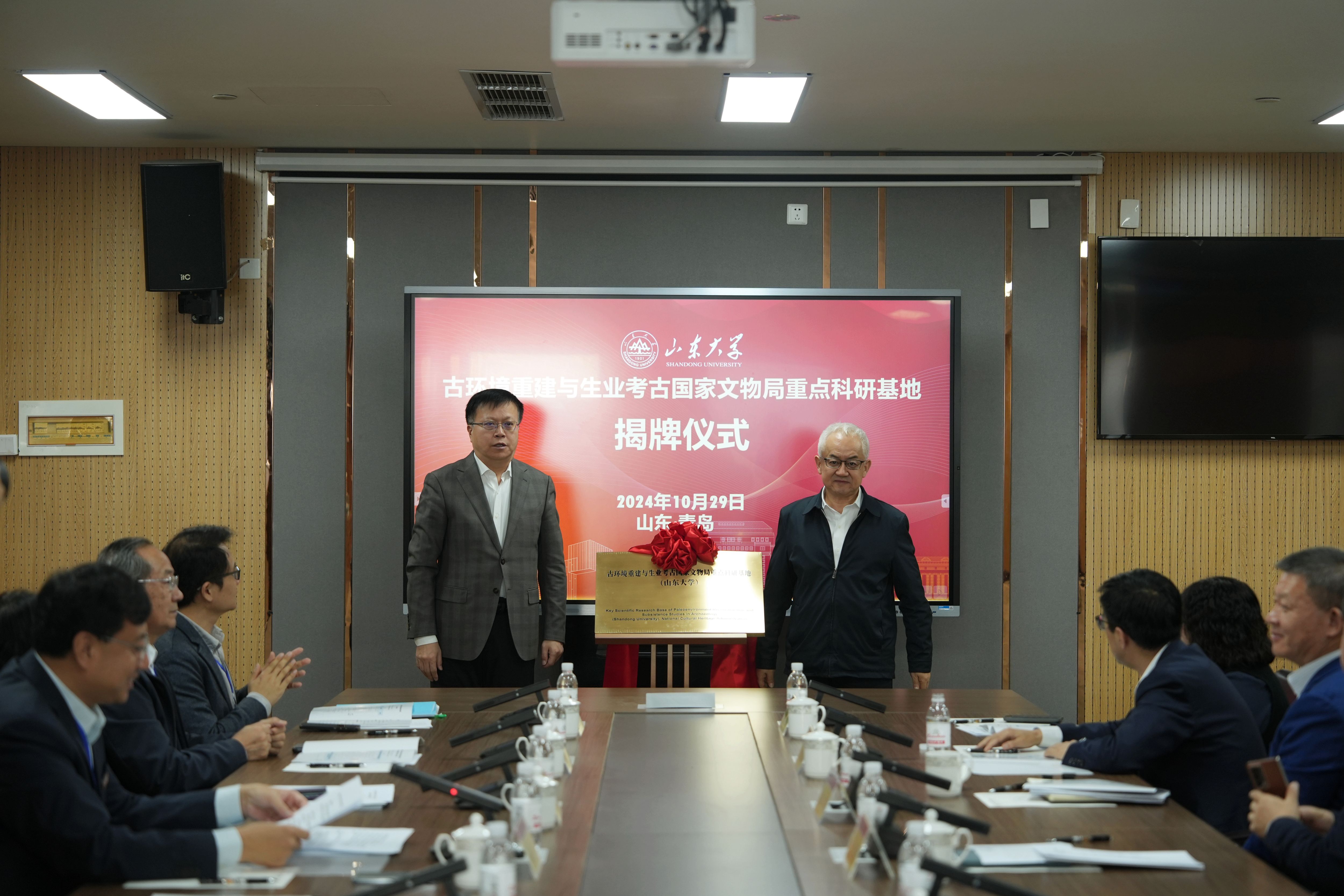 10月29日,古环境重建与生业考古国家文物局重点科研基地揭牌仪式暨基地学术委员会第一届会议在山东大学青岛校区举行。国家文物局副局长乔云飞,国家文物局科技教育司司长罗静,山东省教育厅党组成员、副厅长张志刚,山东省文化和旅游厅党组成员、副厅长刘少华,校党委副书记王君松出席活动。校长助理、青岛校区党工委书记邢占军主持活动。