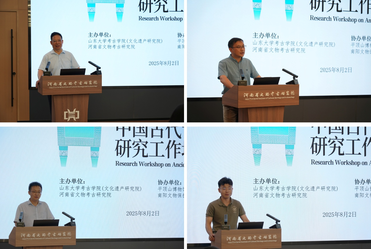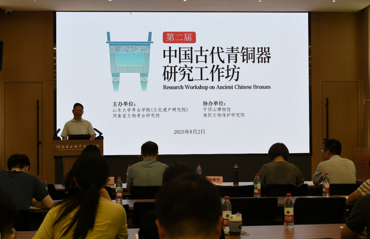 8月2日上午,由山东大学考古学院(文化遗产研究院)、河南省文物考古研究院共同主办,平顶山博物馆、南阳文物保护研究院协办的“第二届中国古代青铜器研究工作坊”在河南省文物考古研究院二楼会议中心举行开班仪式。河南省文物考古研究院党委书记刘海旺研究员、山东大学考古学院常务副院长郎剑锋教授、上海博物馆文物保护科技中心副主任丁忠明研究员先后致辞,山东大学考古学院(文化遗产研究院)2024级博士研究生张新天作为学员代表发言。开班仪式由河南省文物考古研究院副院长梁法伟研究员主持。