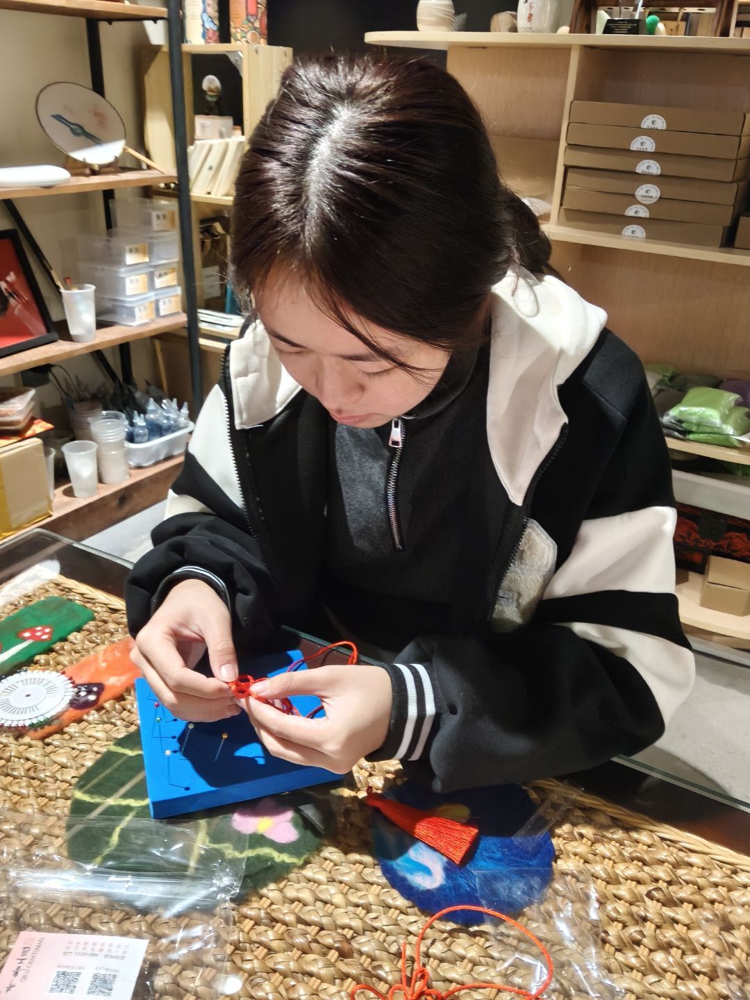 2025级文物全科人才1班团支部充分发挥专业特色同学们广泛参与中国结、纸灯、沙瓶画、刺绣等多项非遗手工艺实践,将书本上的传统知识转化为触手可及的精美作品,在经纬交错与针线穿梭中,深刻体会劳动创造与文化传承的相辅相成。