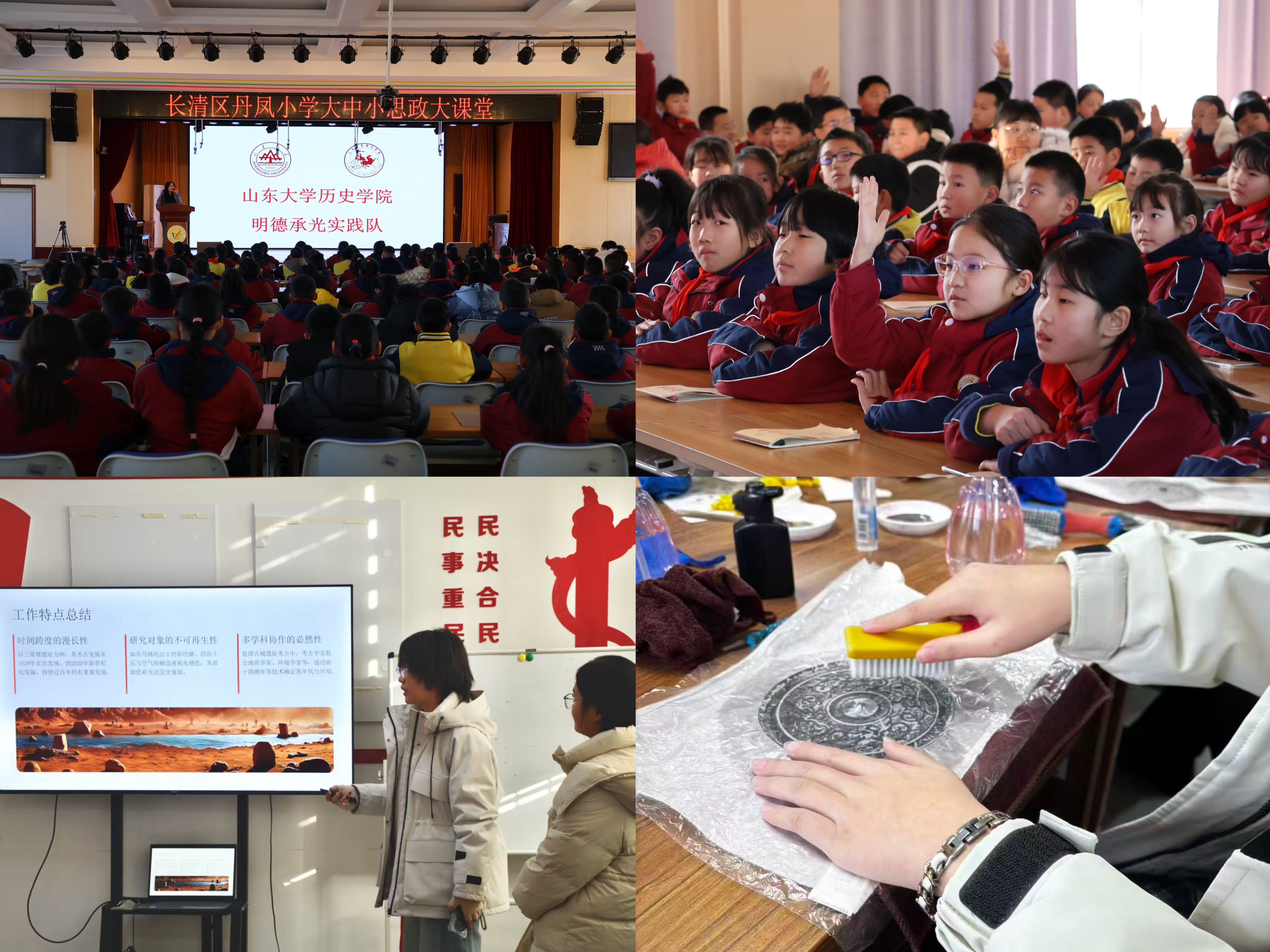 “寻迹星火”实践队数次奔赴鲁南乡村寻访抗美援朝老兵,系统整理访谈实录、影像资料,让红色记忆代代相传。“薪火档案守护”队、“红档溯源”实践队整理红色档案目录,调研不同场馆在红色档案叙事中的方法特点,探寻红色记忆背后的精神密码。“三线薪火”实践团探寻乡村工业遗产的发展轨迹,深刻领悟社会主义建设时期小三线建设的重要意义。“煤魂国脉”团队、“钢轨星火,铭史传薪”调研团围绕近代民族工业与红色工运、工业遗产保护与活化利用进行实地调研。“茶博知行”队、“蒲家庄聊斋”实践队、“典籍载道·非遗寻踪”调研团访谈传承人与当地村民,持续关注地方文化遗产保护。