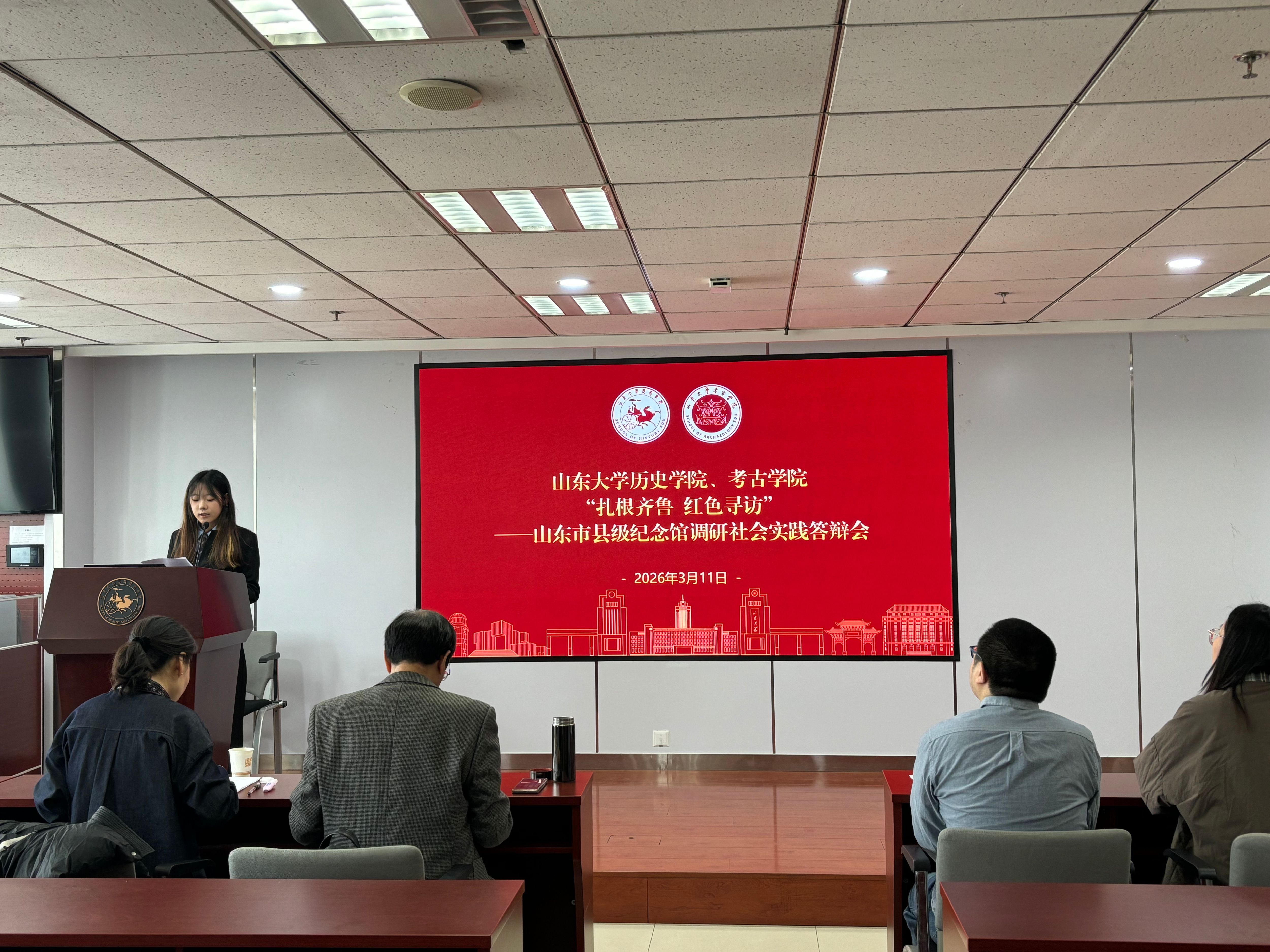 为深入学习贯彻党的二十届四中全会精神,引导青年学子在社会实践中坚定理想信念、涵养家国情怀,山东大学历史学院、考古学院于2026年寒假期间组织开展“扎根齐鲁 红色寻访——山东市县级纪念馆专项调研”社会实践,推动支持考古学院文物全科人才专业、历史学院学生组成26支实践队伍,奔赴山东省16地市革命纪念馆、革命文物保护单位,开展实地调研,以专业所长助力构建山东省革命文物资源的谱系化结构,并于3月11日举办答辩会,全面总结实践成效、展现青年担当。